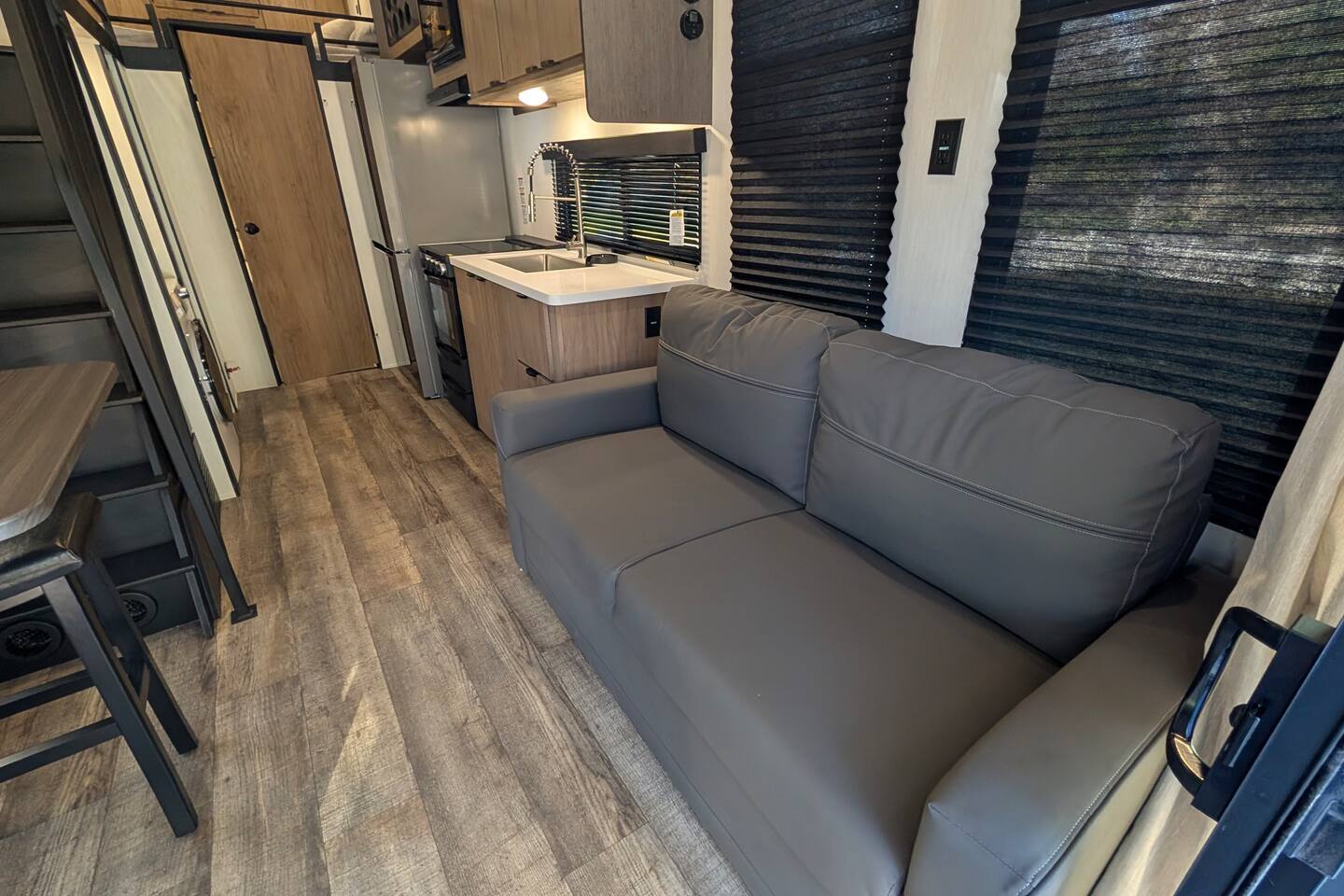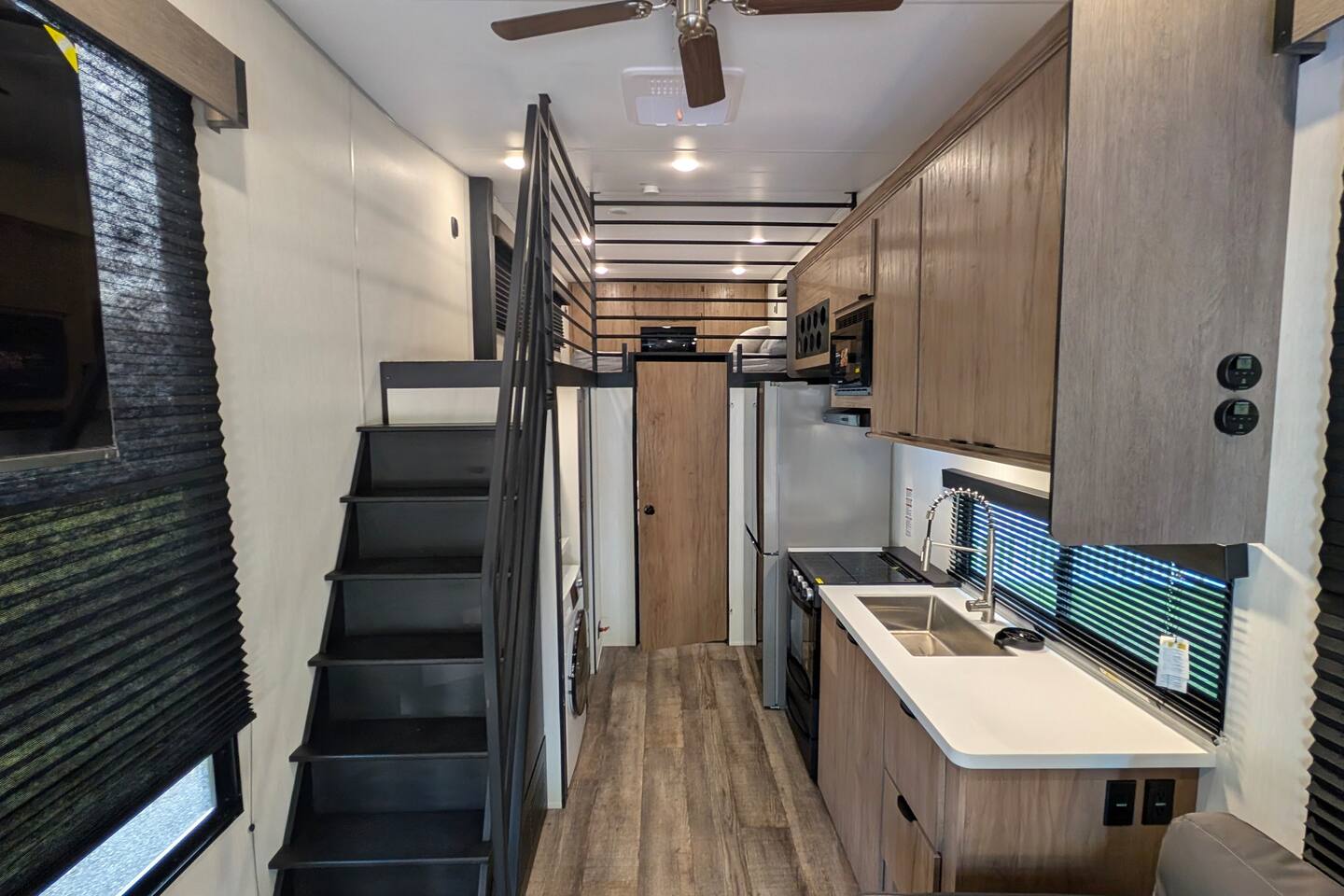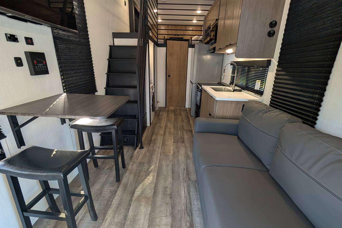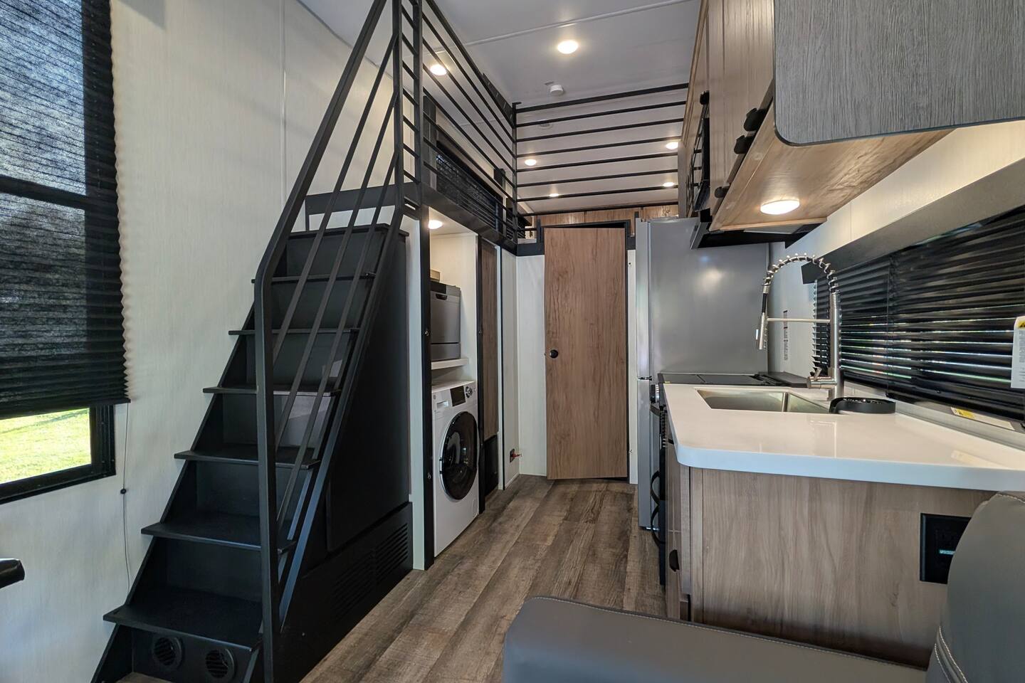 NOTE: You will be required to empty the water tanks by pulling 2 handles; it is explained in the arrival guide at the home. Pets welcome $50 per pet 1 Private Bedroom 1 Loft Bedroom that sleeps 4 1 Pull-out Double Couch FULL Bathroom with stand-up shower Small Gas Grill Kitchen Full-size fridge Small Dishwasher All-in-one Washer/Dryer FREE 16ft Boat to use You can dock your boat behind the home. grill, a table with an umbrella, and a fire pit. Many natural Springs