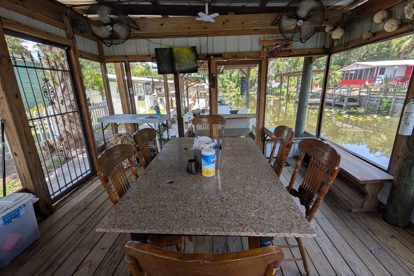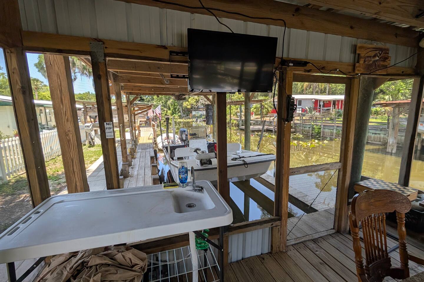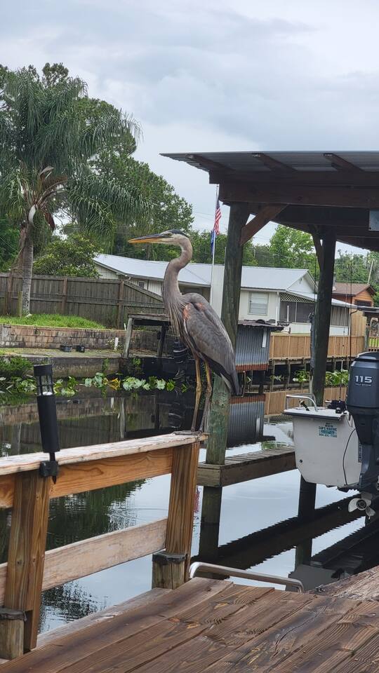 Just a few minutes away is the Redneck Riviera. it's a sandbar where all the locals hang out and have a great time and everybody's welcome to join in and have a great time and make memories FREE USE of our 16-ft inflatable boat for 1 day when you stay 4 days or more (extra days available). The boat has a 4-stroke 20 hp motor (the same boat used by rescue services, very safe). If you stay for a shorter time, we rent the boat by the day. Known as the Bass Capital, you are just a few minutes away from the St. Johns River, Crescent Lake, and even Lake George, the second largest lake in Florida. We have a fish cleaning station, a grill, and a griddle that are in a screened-in area on the water with fans and a TV. A large granite-top table that seats 10. Bass fishing, Crappie, Red Fish, Catfish, Bluegill, Shrimping, Crabbing (we provide crab trapsfor you to use) and much more can all be found here! Many springs are within a short drive. Silver Glen (my favorite), Salt Springs, Mud Spring (it's not muddy), Juniper Springs, Alexander Springs, and the world-famous Silver Springs with Glass-Bottom boats! 4 Crab traps for big old BLUE CRABS are yours to use. The house is on a canal just a few minutes from St. John's River and Dunn's Creek, which lead to Lake George and Crescent Lake, both of which are known as the bass capital of the world. With access to the Salt Springs swimming area, as well as my favorite spring in Florida, Silver Glen. From the back yard, you can fish, relax, and will always see some critters, like our Blue Herons that stop by all the time, or the many birds that visit our bird feeder and bird bath, as well as hummingbirds that visit the feeder and a few alligators in the canal. Home offers 100 ft of dock front to tie your boat with boat ramps just a few miles away if you decide to bring your own boat. We offer a 16-ft inflatable boat with a 20-hp motor for you to use during your stay at no charge if you stay for 4 days or more. Fishing poles with tackle are provided, as well as a worm farm to get your own live bait. You can fish right off the dock and catch many species of fish. The screened-in grill area features a large gas grill and a spacious flat-top griddle, along with a table and chairs, as well as a Smart TV for enjoying the outdoors. There are 2 king beds: one is a Craftmatic adjustable bed with a Tempur-Pedic mattress, and the other is a high-quality memory foam mattress with cooling features. Bunk bed for the kids with a double futon on the bottom and a twin mattress on the top. Two couches can be converted into beds; one is a queen and the other is a twin. Tankless hot water heater. Water Filtration System. 6 smart TVs. FREE Wi-Fi. Gated yard for your pets. Hunting is available in the Ocala National Forest and other wildlife management areas within 30 minutes or less.